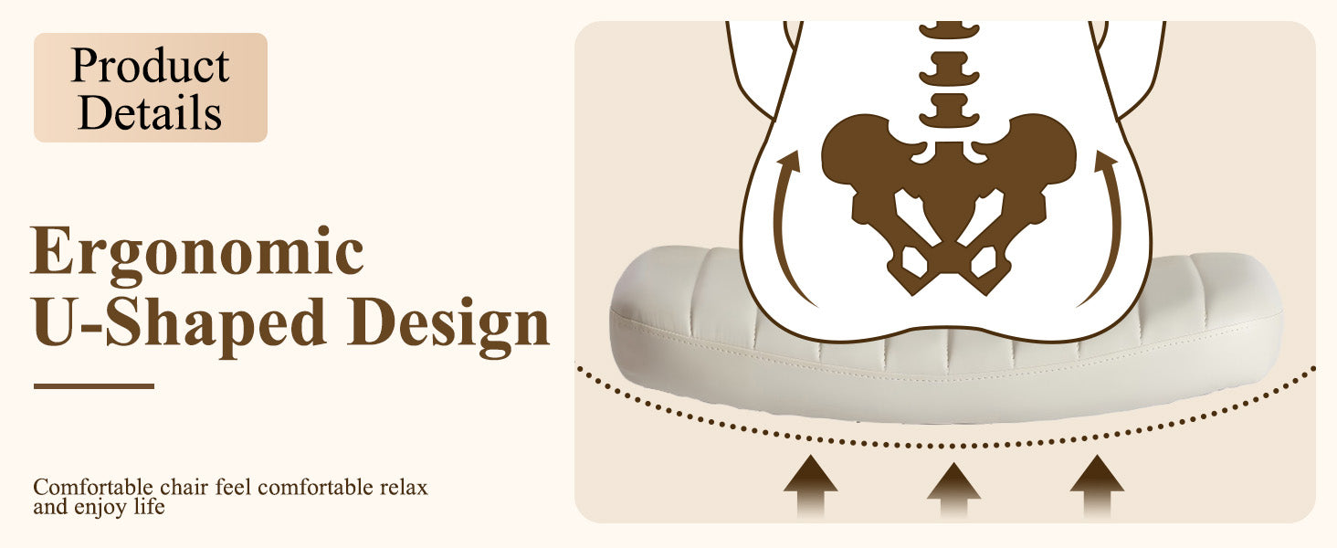 U-Shaped Seat Design: The wide, U-shaped seat and huggable padded backrest reduce pressure on the hips, offering long-lasting comfort.
