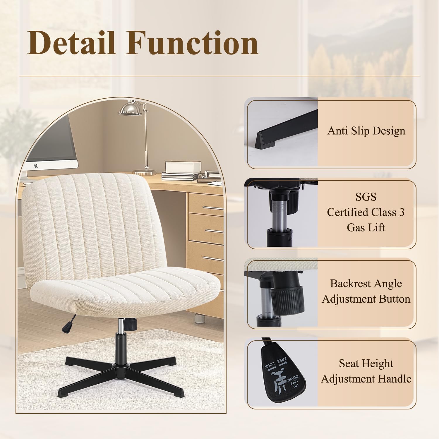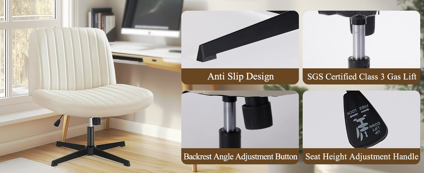 Benefit from anti-slip legs, an SGS certified 3-gas lift, and seamless backrest and seat height adjustments that put ergonomic control at your fingertips.