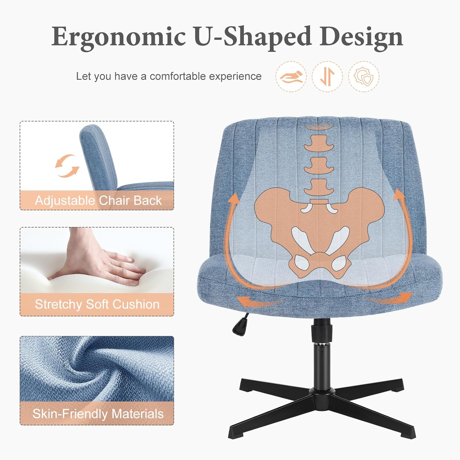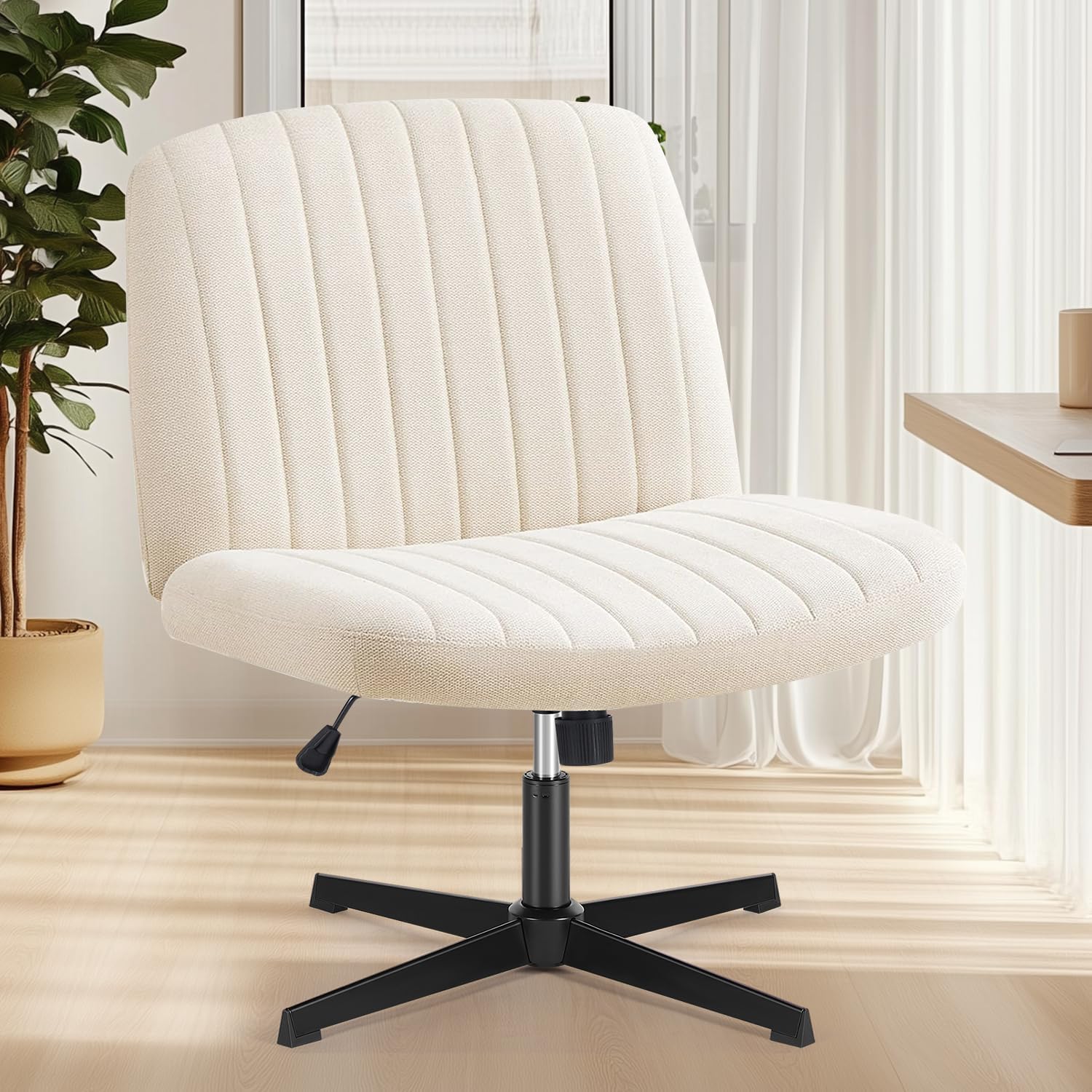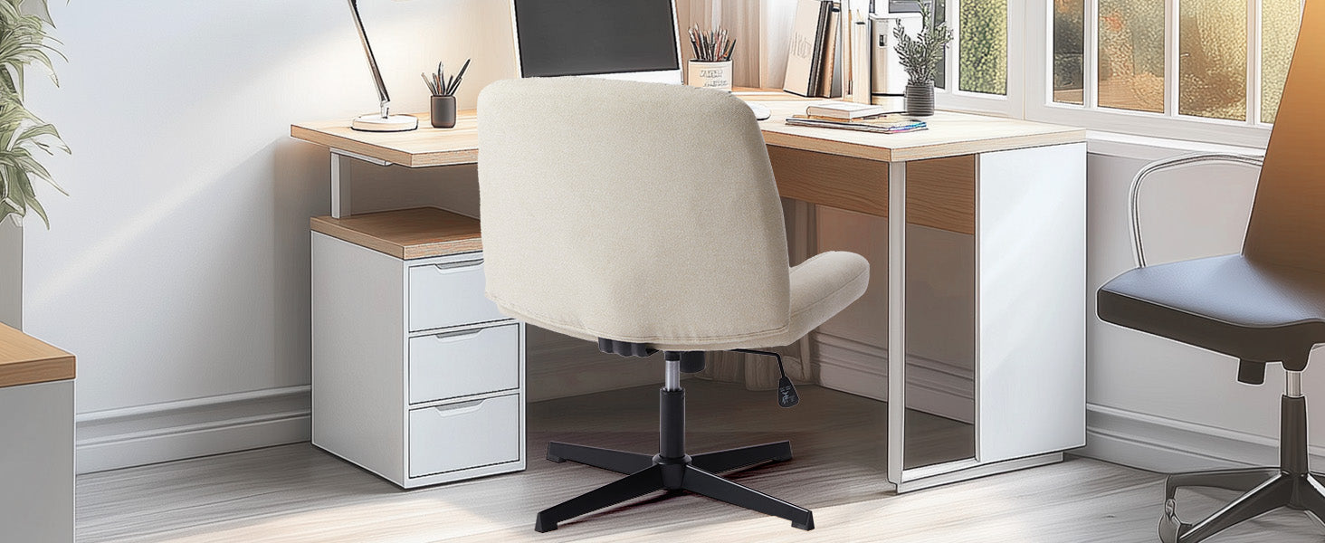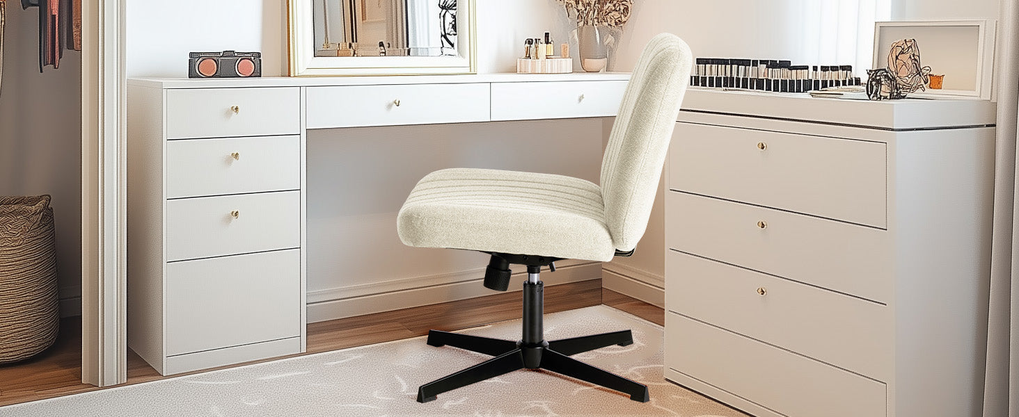 The chair’s height is adjustable between 31.1" and 35", ensuring a comfortable fit for desks, vanities, or any workspace.