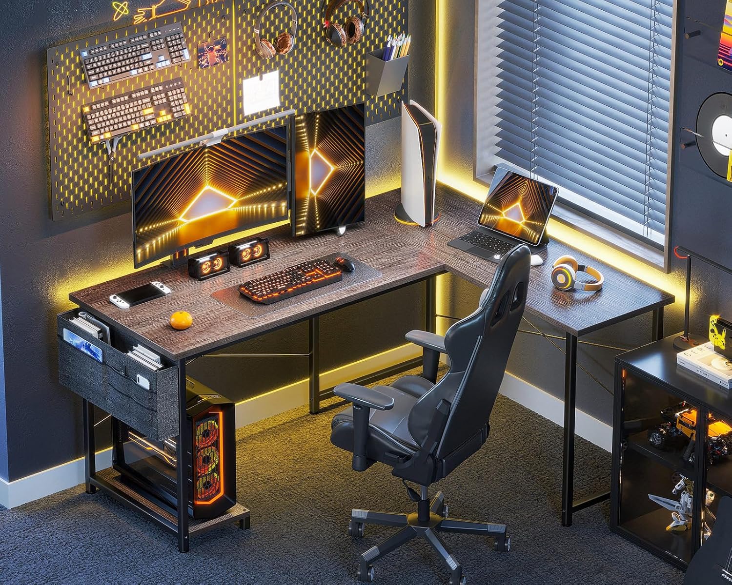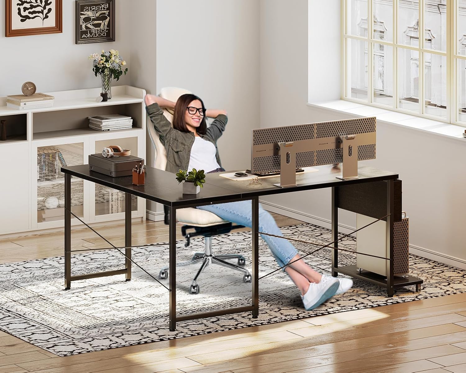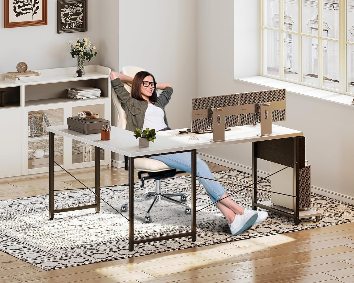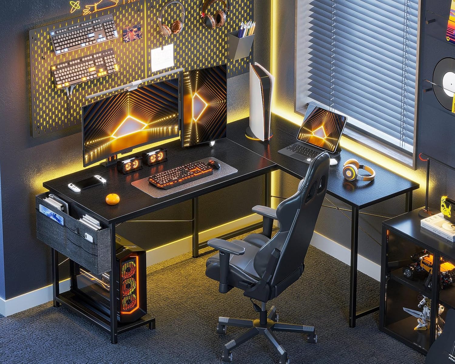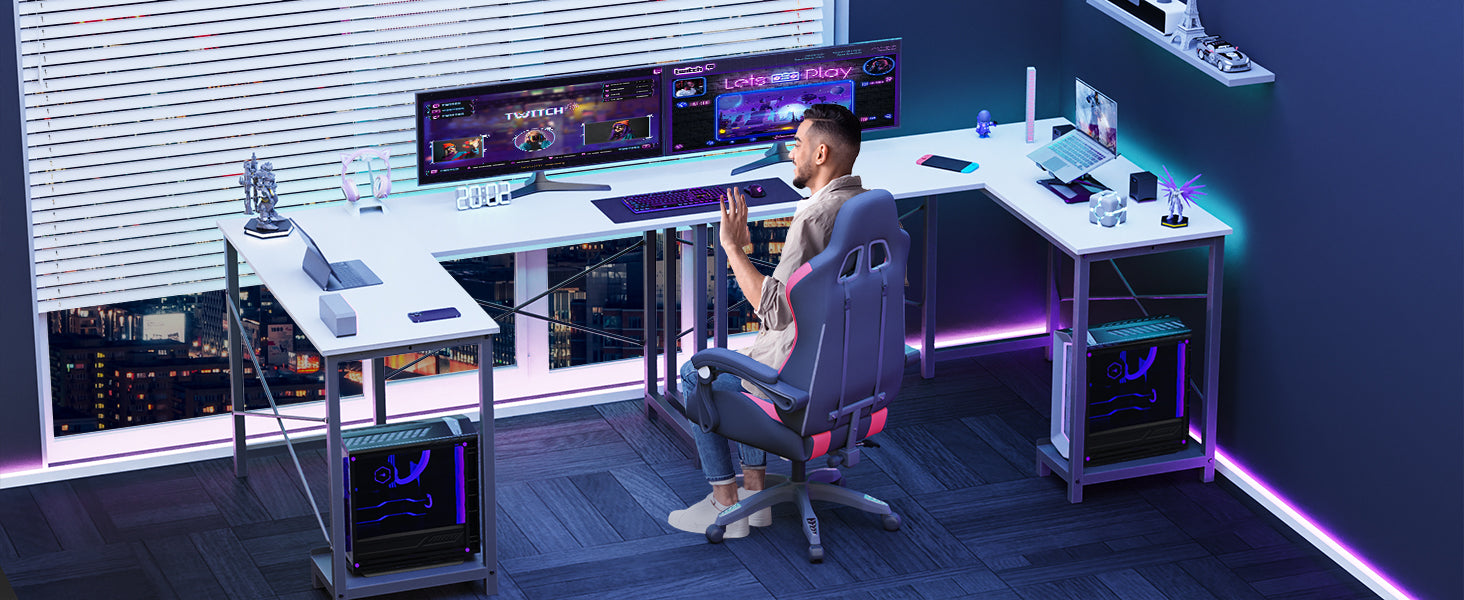 Absolutely! The desk is crafted with a durable metal frame and a waterproof wooden desktop, supporting up to 176 lbs. It’s perfect for holding multiple monitors, gaming gear, or office equipment.