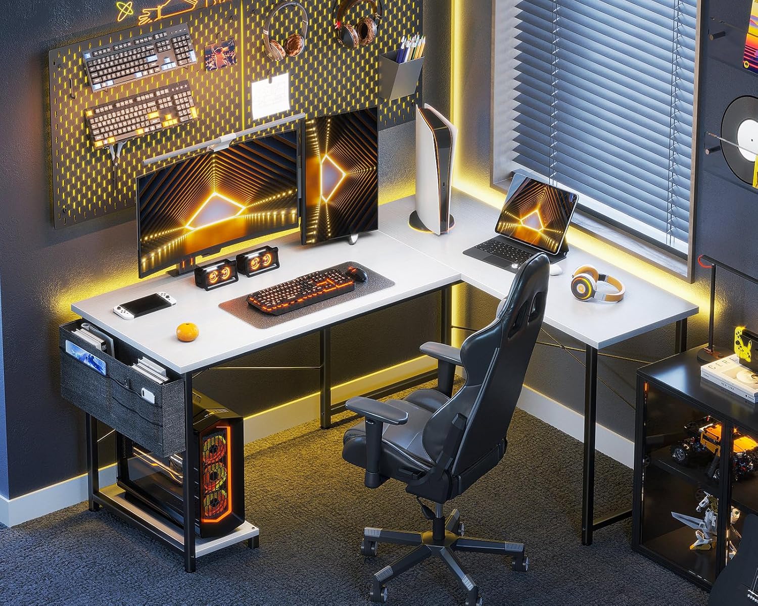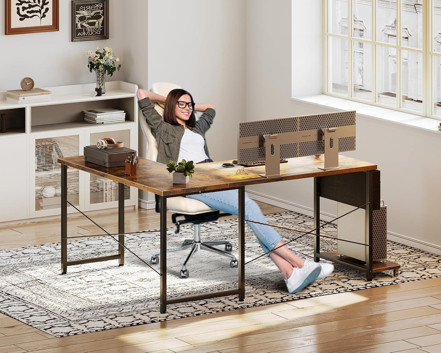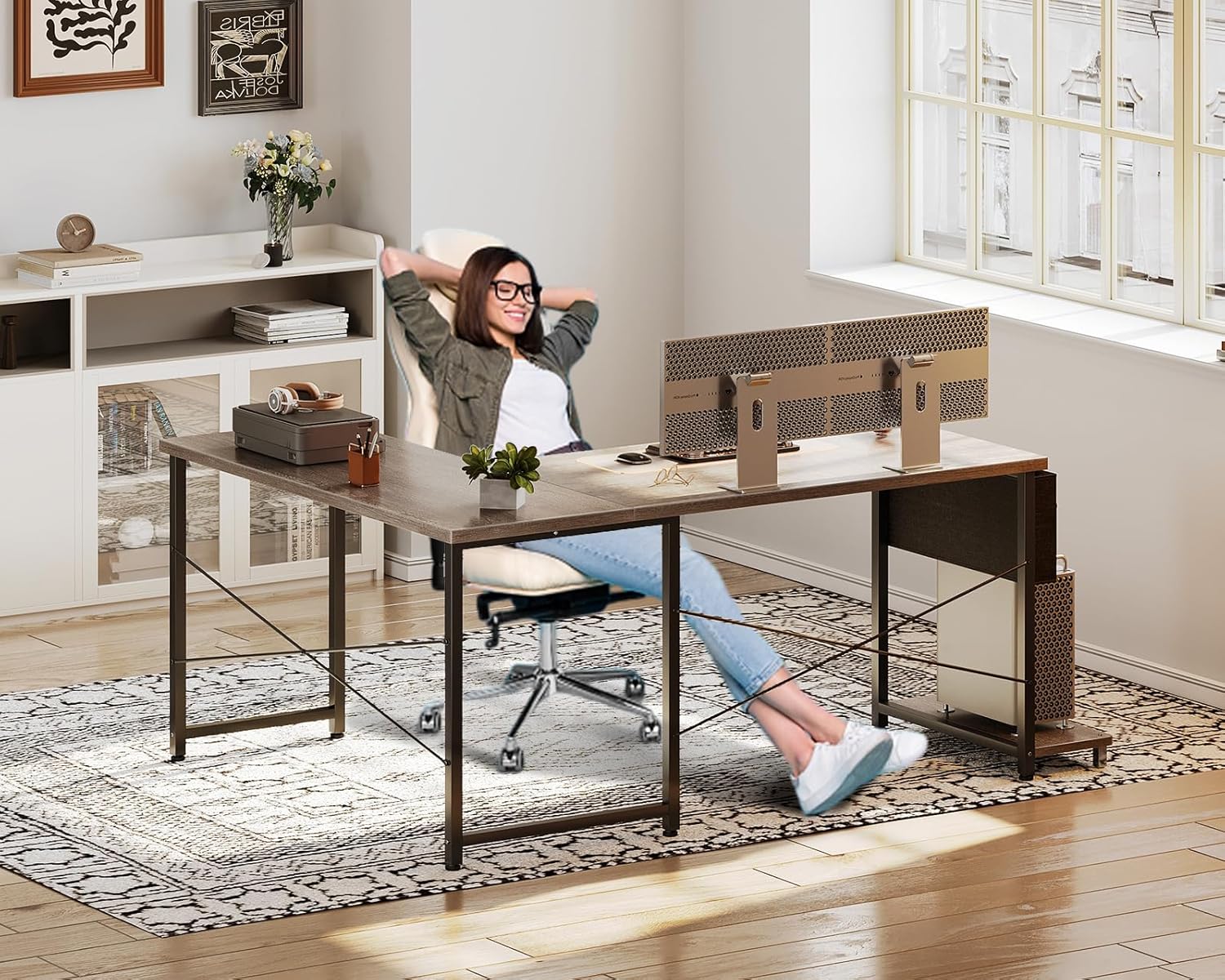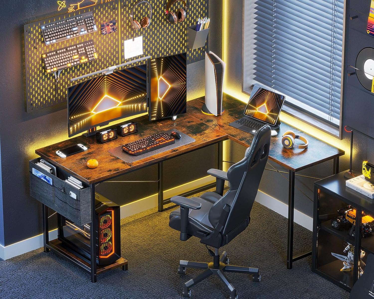Absolutely! The desk is crafted with a durable metal frame and a waterproof wooden desktop, supporting up to 176 lbs. It’s perfect for holding multiple monitors, gaming gear, or office equipment.