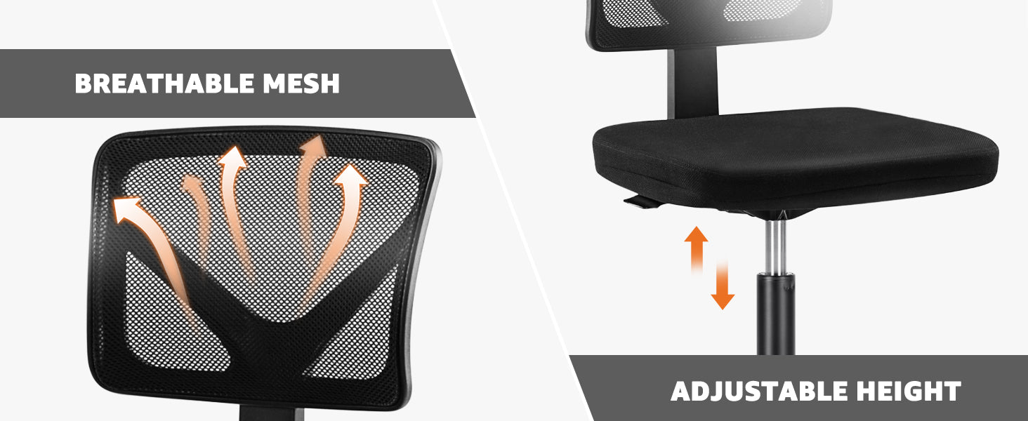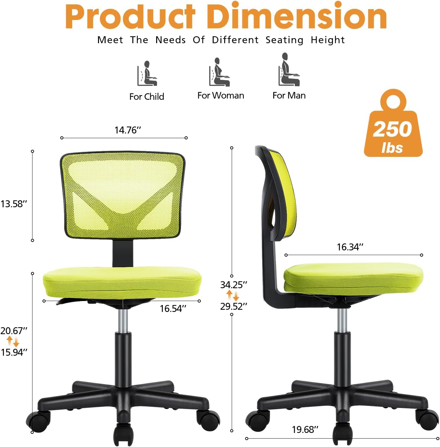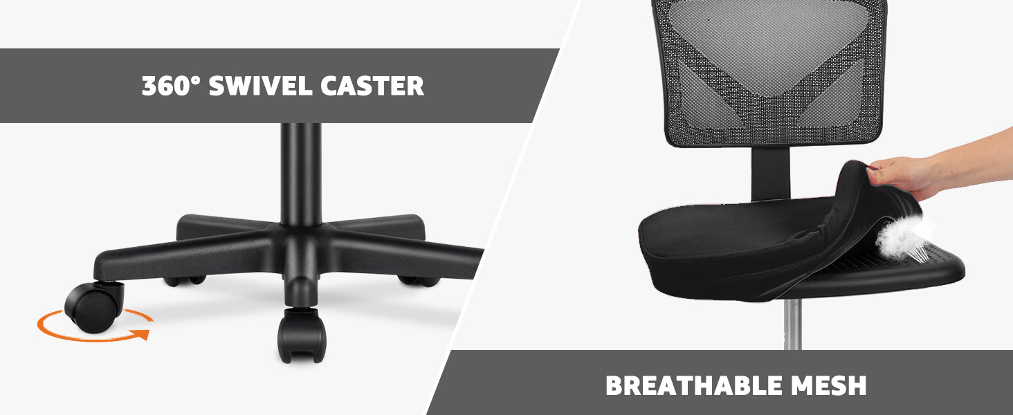 The chair’s height can be adjusted between 15.94" and 20.67", allowing you to find the perfect seating position for your desk or workspace. It also features a 360-degree swivel for easy movement.